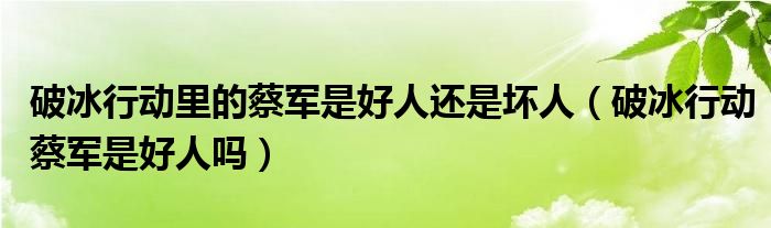 破冰行动里的蔡军是好人还是坏人(破冰行动蔡军是好人吗)