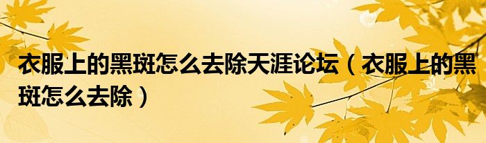 大家好,小晋来为大家解答以下问题,关于衣服上的黑斑怎么去除天涯论坛,衣服上的黑斑怎么去除很多人还不知道,今天让我们一起来看看吧!