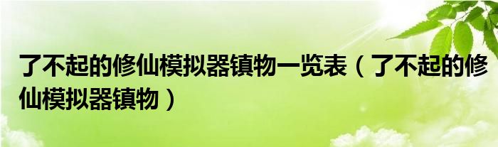 大家好,小晋来为大家解答以下问题,关于了不起的修仙模拟器镇物一览表,了不起的修仙模拟器镇物很多人还不知道,今天让我们一起来看看吧!