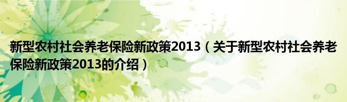 大家好,今天小乐来为大家解答以上的问题。新型农村社会养老保险新政策2013,关于新型农村社会养老保险新政策2013的介绍很多人还不知道,现在让我们一起来看看吧!