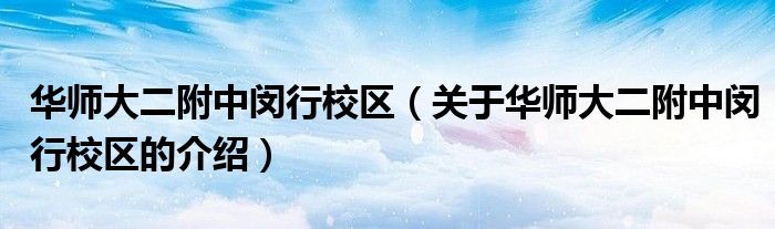 大家好,今天小乐来为大家解答以上的问题。华师大二附中闵行校区,关于华师大二附中闵行校区的介绍很多人还不知道,现在让我们一起来看看吧!