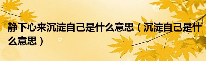 关于静下心来沉淀自己是什么意思,沉淀自己是什么意思这个很多人还不知道,今天菲菲来为大家解答以上的问题,现在让我们一起来看看吧!