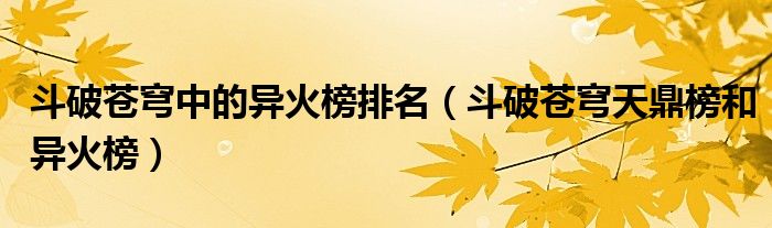 关于斗破苍穹中的异火榜排名,斗破苍穹天鼎榜和异火榜这个很多人还不知道,今天菲菲来为大家解答以上的问题,现在让我们一起来看看吧!