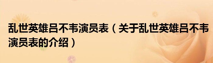 大家好,今天小乐来为大家解答以上的问题。乱世英雄吕不韦演员表,关于乱世英雄吕不韦演员表的介绍很多人还不知道,现在让我们一起来看看吧!