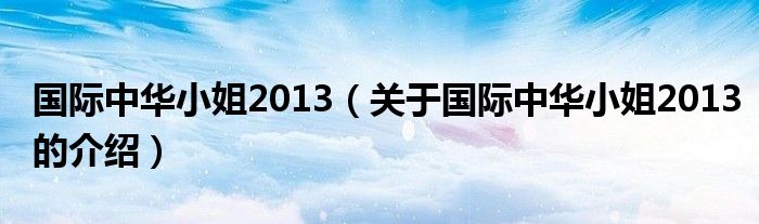大家好,今天小乐来为大家解答以上的问题。国际中华小姐2013,关于国际中华小姐2013的介绍很多人还不知道,现在让我们一起来看看吧!
