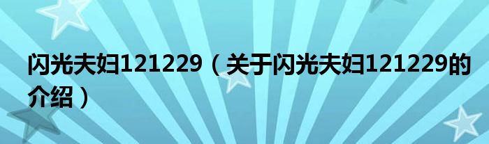 闪光夫妇121229(关于闪光夫妇121229的介绍)
