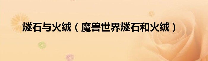 关于燧石与火绒,魔兽世界燧石和火绒这个很多人还不知道,今天菲菲来为大家解答以上的问题,现在让我们一起来看看吧!