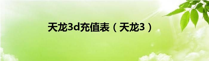 天龙3d充值表(天龙3)