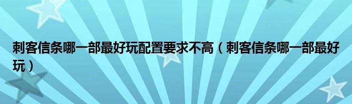 关于刺客信条哪一部最好玩配置要求不高,刺客信条哪一部最好玩这个很多人还不知道,今天菲菲来为大家解答以上的问题,现在让我们一起来看看吧!