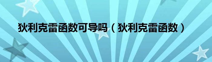 关于狄利克雷函数可导吗,狄利克雷函数这个很多人还不知道,今天菲菲来为大家解答以上的问题,现在让我们一起来看看吧!