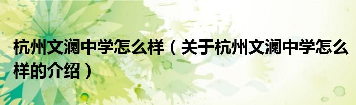 大家好,今天小乐来为大家解答以上的问题。杭州文澜中学怎么样,关于杭州文澜中学怎么样的介绍很多人还不知道,现在让我们一起来看看吧!