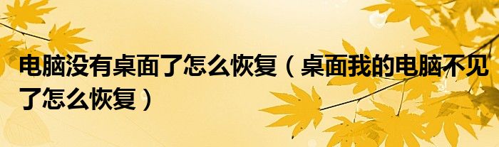 关于电脑没有桌面了怎么恢复,桌面我的电脑不见了怎么恢复这个很多人还不知道,今天菲菲来为大家解答以上的问题,现在让我们一起来看看吧!