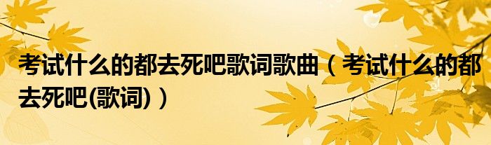 关于考试什么的都去死吧歌词歌曲,考试什么的都去死吧(歌词)这个很多人还不知道,今天菲菲来为大家解答以上的问题,现在让我们一起来看看吧!