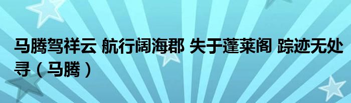 关于马腾驾祥云 航行阔海郡 失于蓬莱阁 踪迹无处寻,马腾这个很多人还不知道,今天菲菲来为大家解答以上的问题,现在让我们一起来看看吧!
