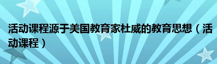 关于活动课程源于美国教育家杜威的教育思想,活动课程这个很多人还不知道,今天菲菲来为大家解答以上的问题,现在让我们一起来看看吧!