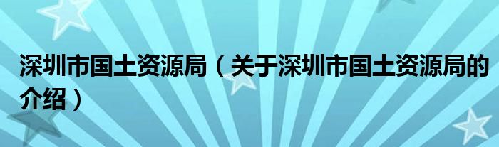 深圳市国土资源局(关于深圳市国土资源局的介绍)