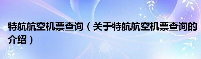 特航航空机票查询(关于特航航空机票查询的介绍)