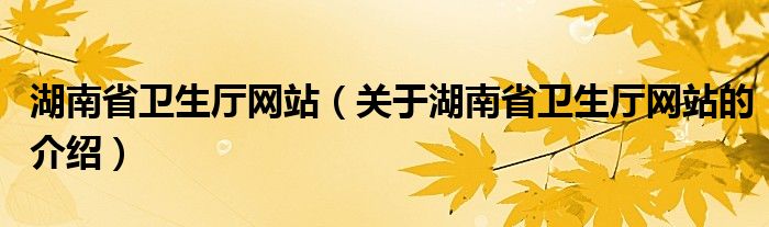 湖南省卫生厅网站(关于湖南省卫生厅网站的介绍)