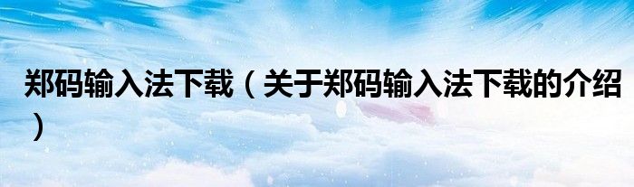 郑码输入法下载(关于郑码输入法下载的介绍)