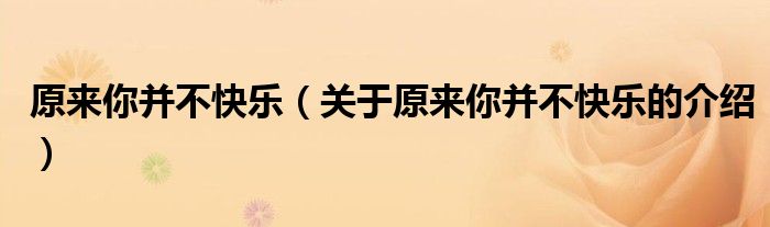大家好,今天小乐来为大家解答以上的问题。原来你并不快乐,关于原来你并不快乐的介绍很多人还不知道,现在让我们一起来看看吧!