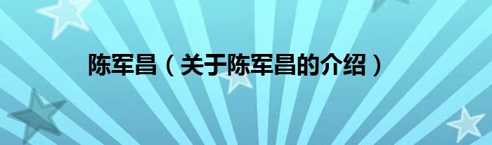 大家好,今天小乐来为大家解答以上的问题。陈军昌,关于陈军昌的介绍很多人还不知道,现在让我们一起来看看吧!