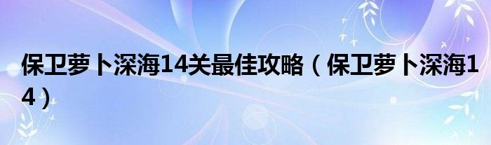 保卫萝卜深海14关最佳攻略,保卫萝卜深海14很多人还不知道,乐乐来为大家解答以上问题,现在让我们一起来看看吧!
