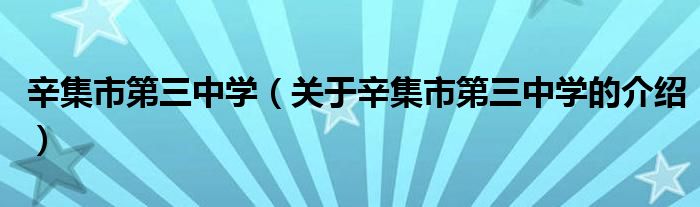 辛集市第三中学(关于辛集市第三中学的介绍)