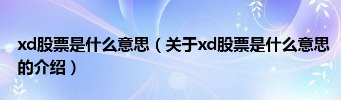 xd股票是什么意思(关于xd股票是什么意思的介绍)