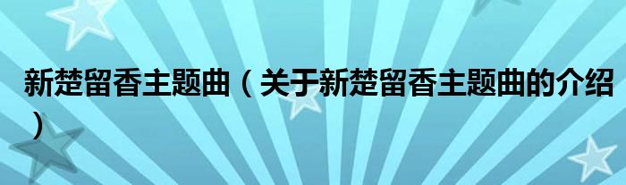 新楚留香主题曲(关于新楚留香主题曲的介绍)