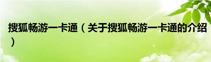大家好,小都来为大家解答以上的问题。搜狐畅游一卡通,关于搜狐畅游一卡通的介绍很多人还不知道,现在让我们一起来看看吧!