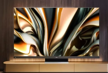 除了A9H,海信还推出了A85H,它与A9H共享大部分功能,但在65英寸型号的同时引入了55英寸尺寸选项,同时还配备了功能较弱的扬声器系统。A85H还配备了一个旋转支架,海信声称它可以让电视以25度角旋转,同时保持稳定。