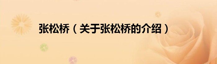 大家好,小都来为大家解答以上的问题。张松桥,关于张松桥的介绍很多人还不知道,现在让我们一起来看看吧!