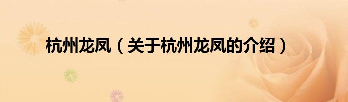 大家好,小都来为大家解答以上的问题。杭州龙凤,关于杭州龙凤的介绍很多人还不知道,现在让我们一起来看看吧!