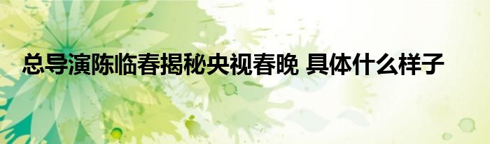 大家好.我是互联百科的羽儿,现在为大家解决以上总导演陈临春揭秘央视春晚 具体什么样子的问题.