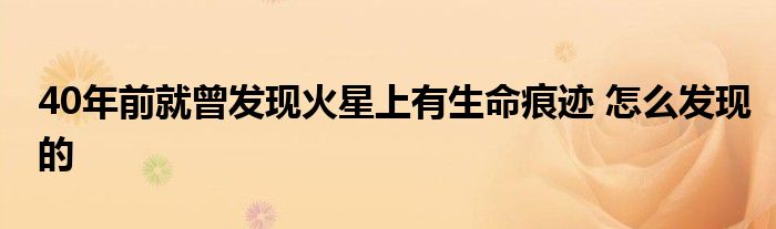 大家好.我是互联百科的羽儿,现在为大家解决以上40年前就曾发现火星上有生命痕迹 怎么发现的的问题.