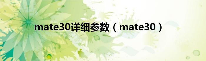 大家好,雨雨来为大家解答以上问题,mate30详细参数,mate30很多人还不知道,现在让我们一起来看看吧!