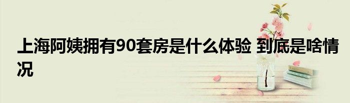 2、【上海阿姨拥有90套房是什么体验】能在自己生活的城市买一套房子,想必这是许多人一生的追求。尽管国家对于房价有所管控,但如今的房价仍然很高,尤其是在北上广深这样的一线城市,买房并不是一件易事。近日,有媒体爆料,一阿姨在上海就有90套房106个车位,瞬间引起全网热议!