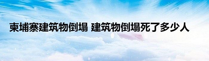 大家好.我是互联百科的羽儿,现在为大家解决以上柬埔寨建筑物倒塌 建筑物倒塌死了多少人的问题.