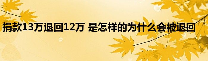 1、捐款13万退回12万 是怎么回事?为什么会被退回?