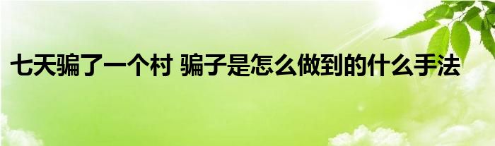大家好.我是互联百科的羽儿,现在为大家解决以上七天骗了一个村 骗子是怎么做到的什么手法的问题.