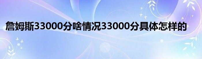 大家好.我是互联百科的羽儿,现在为大家解决以上詹姆斯33000分啥情况33000分具体怎样的的问题.