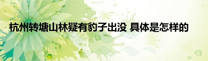 大家好.我是互联百科的羽儿,现在为大家解决以上杭州转塘山林疑有豹子出没 具体是怎样的的问题.