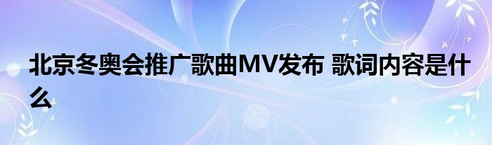 大家好.我是互联百科的羽儿,现在为大家解决以上北京冬奥会推广歌曲MV发布 歌词内容是什么的问题.