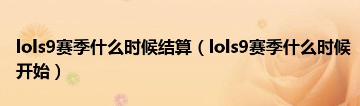 关于lols9赛季什么时候结算,lols9赛季什么时候开始这个很多人还不知道,今天菲菲来为大家解答以上的问题,现在让我们一起来看看吧!