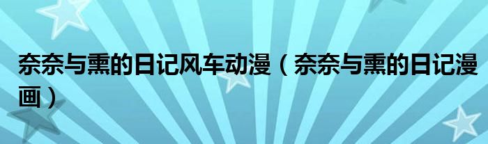 关于奈奈与熏的日记风车动漫,奈奈与熏的日记漫画这个很多人还不知道,今天菲菲来为大家解答以上的问题,现在让我们一起来看看吧!