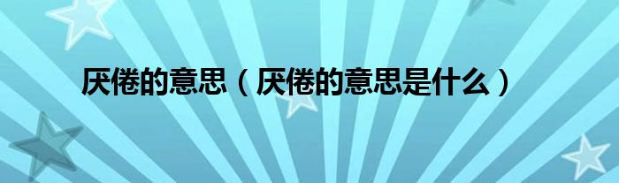 关于厌倦的意思,厌倦的意思是什么这个很多人还不知道,今天菲菲来为大家解答以上的问题,现在让我们一起来看看吧!