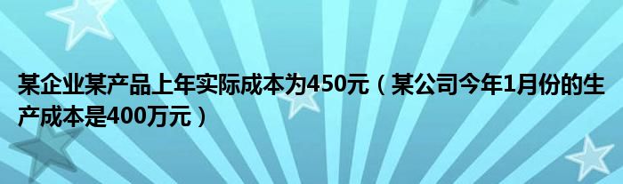 关于某企业某产品上年实际成本为450元,某公司今年1月份的生产成本是400万元这个很多人还不知道,今天菲菲来为大家解答以上的问题,现在让我们一起来看看吧!