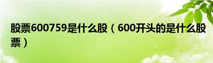 关于股票600759是什么股,600开头的是什么股票这个很多人还不知道,今天菲菲来为大家解答以上的问题,现在让我们一起来看看吧!