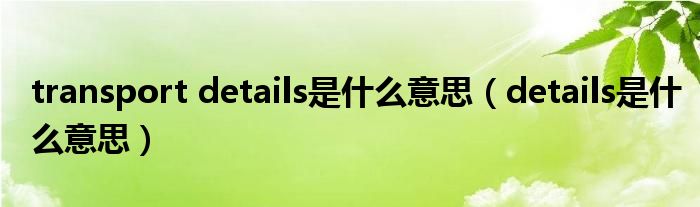 关于transport details是什么意思,details是什么意思这个很多人还不知道,今天菲菲来为大家解答以上的问题,现在让我们一起来看看吧!