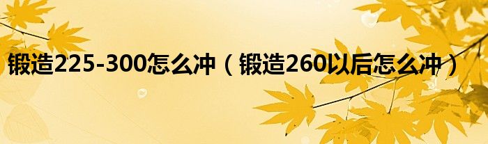 关于锻造225-300怎么冲,锻造260以后怎么冲这个很多人还不知道,今天菲菲来为大家解答以上的问题,现在让我们一起来看看吧!